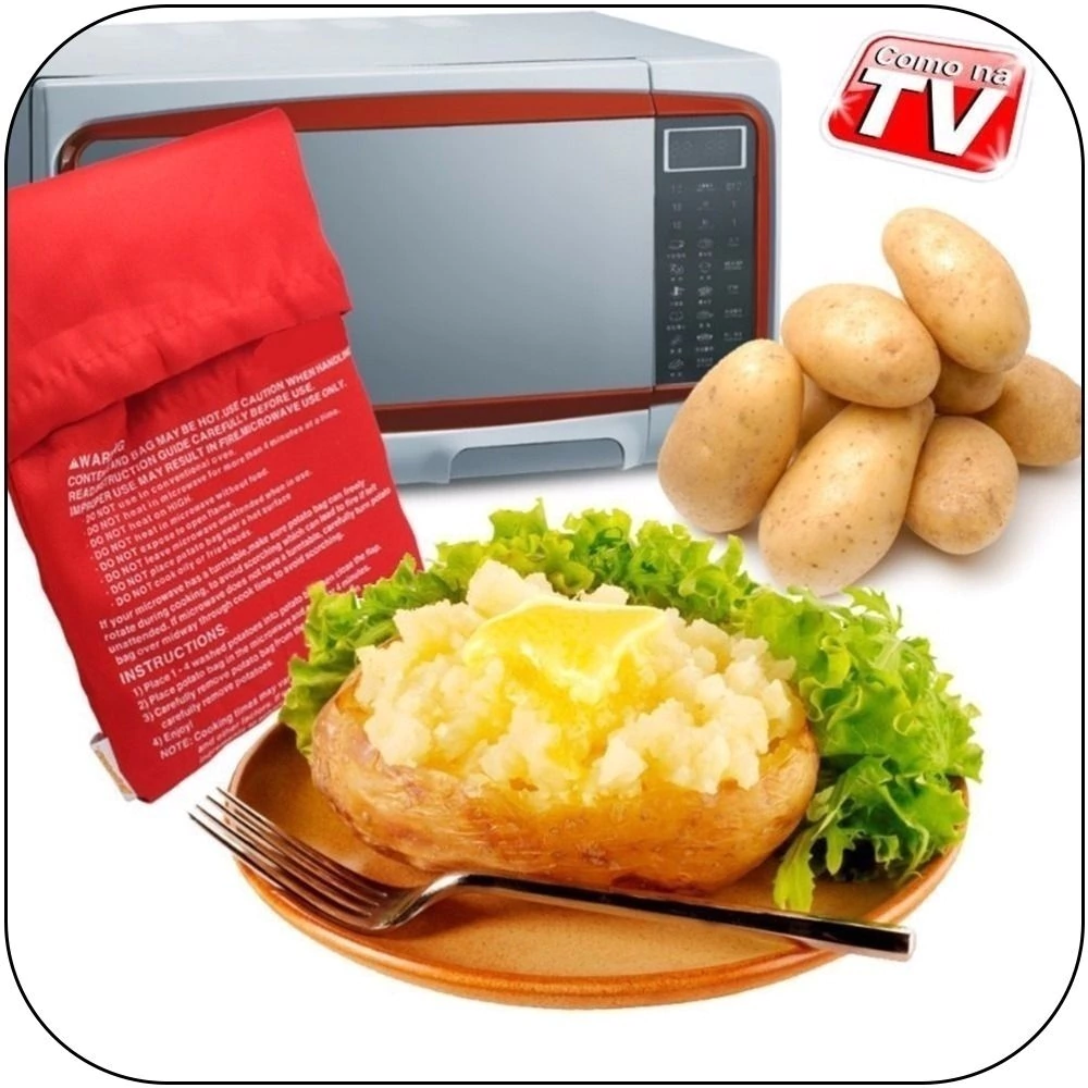 O Potato Express® é um produto muito bacana que facilita nossas vidas, a primeira vista parece um simples saco de cozinhar no microonda, mas ele é realmente muito prático e cumpre a risca o que promete, o Potato Express é basicamente uma bolsinha em forma de capinha, de tecido duplo, que foi criado para cozinhar batatas rapidamente no microondas, mas é possivel fazer uso em muitas outras aplicações.